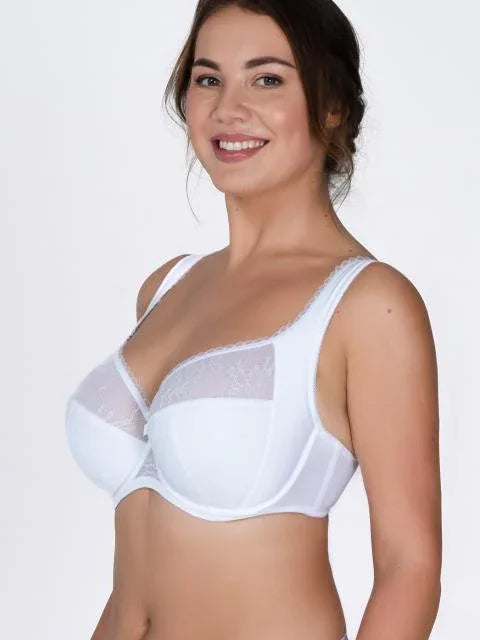Soft , full cup bra with underwire. The padded side detail corrects the position of the breast and creates an attractive shape. The wide padded shoulder straps provide a comfortable and customized fit to the body. Available in various sizes, including larger options, for the perfect fit and support.