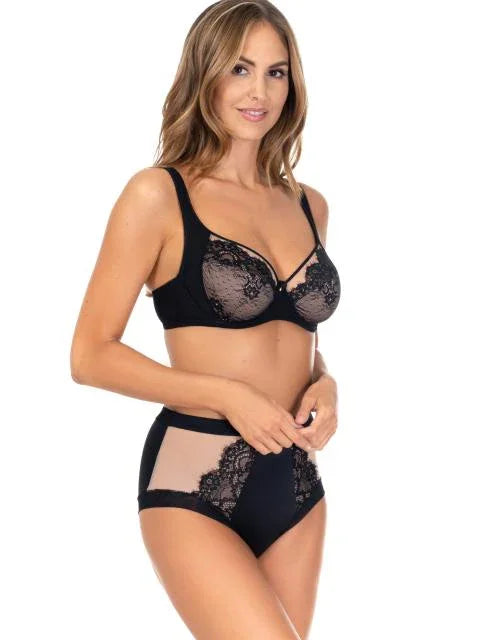 Lace and Mesh Unpadded Comfort Bra. Jessica. Black